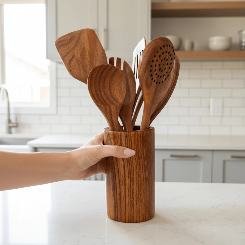 Timeless wooden utensils designed for healthier cooking and a more sustainable home — free from plastic, toxins, and compromise.