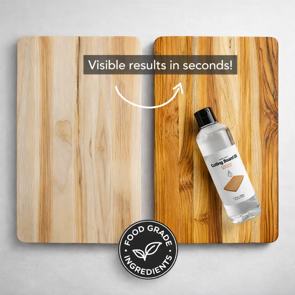 Our Food-Grade Mineral Oil for Cutting Boards & Wooden Utensils is specially formulated to nourish, protect, and preserve natural wood—helping it stay smooth, strong, and beautiful for everyday kitchen use.
